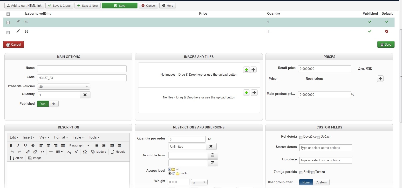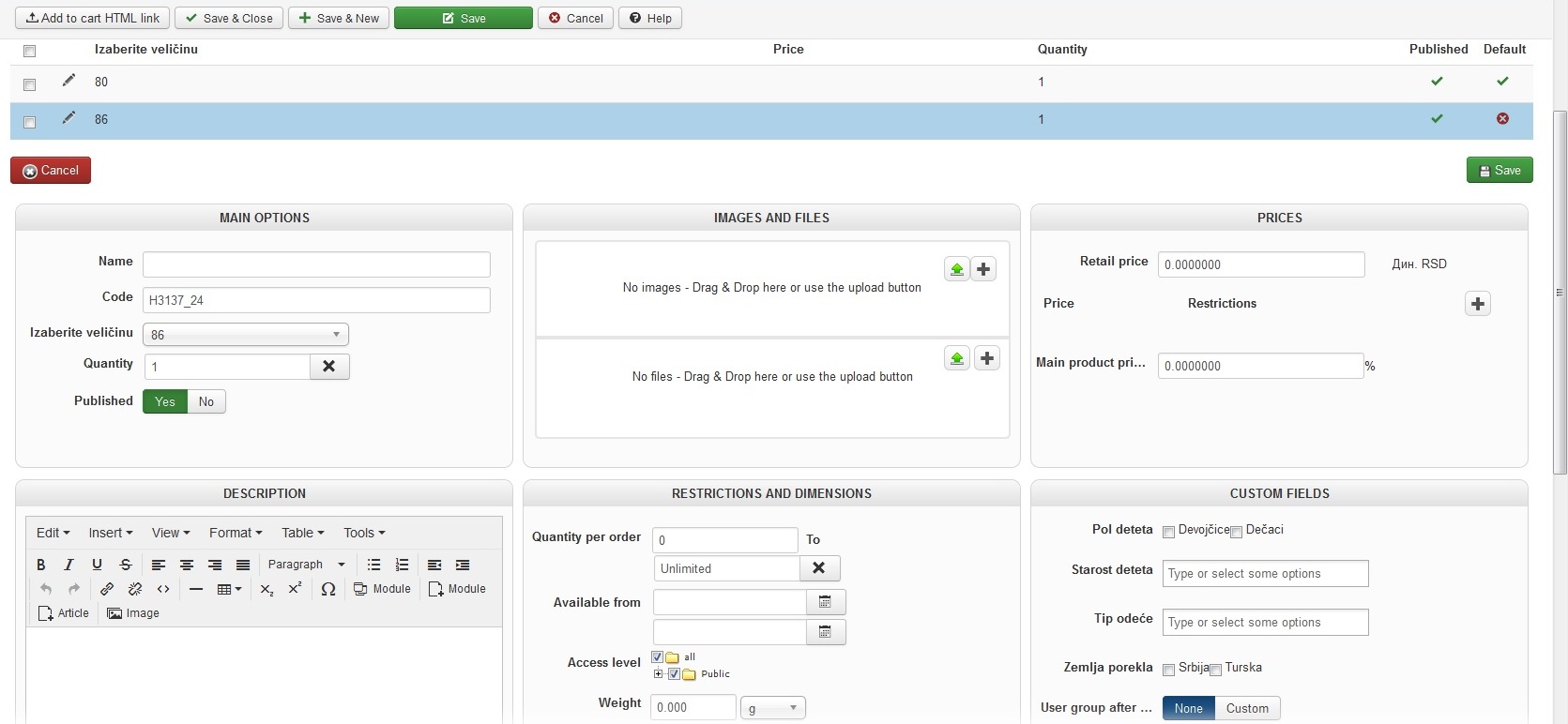 Setting quantity=2, variant 80=1, variant 86=1. I checked and noticed different behavior