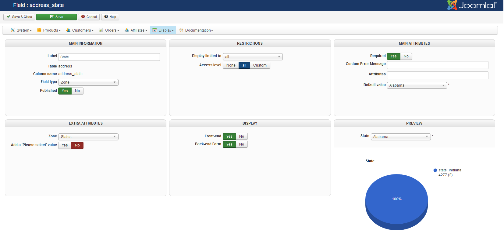First off it is working now, but it has to be published on the "Front-End" or the States do not show. If you want access to figure it out let me know and I will provide it.