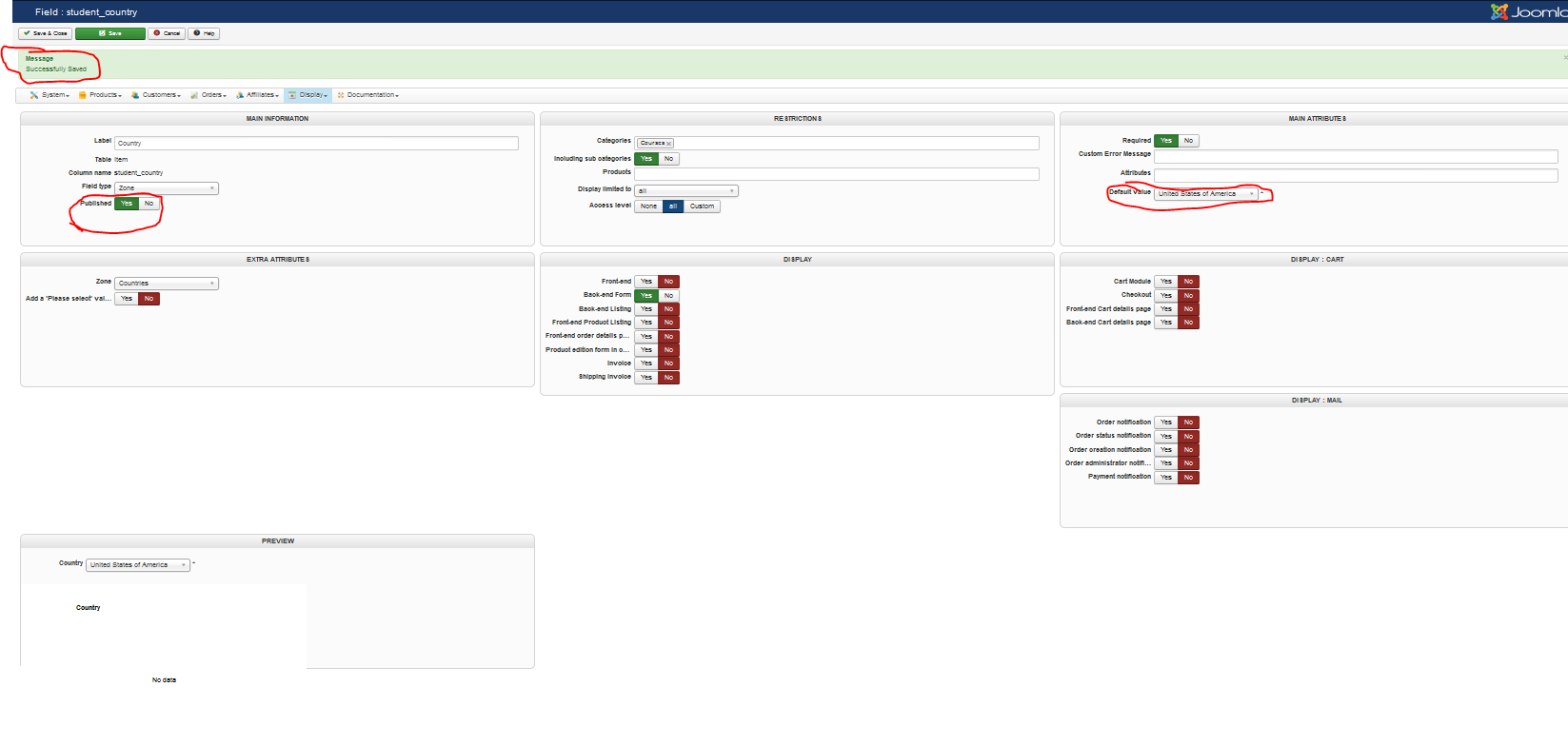 Only after I published again was I able to also save the desired country.