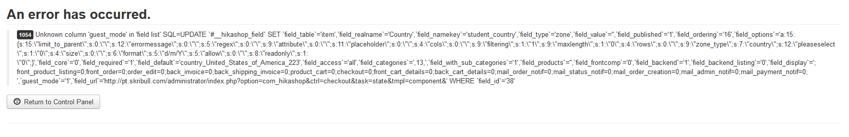 Navigating back to display custom fields shows that it was created, but I got the same error when attempting to edit it.