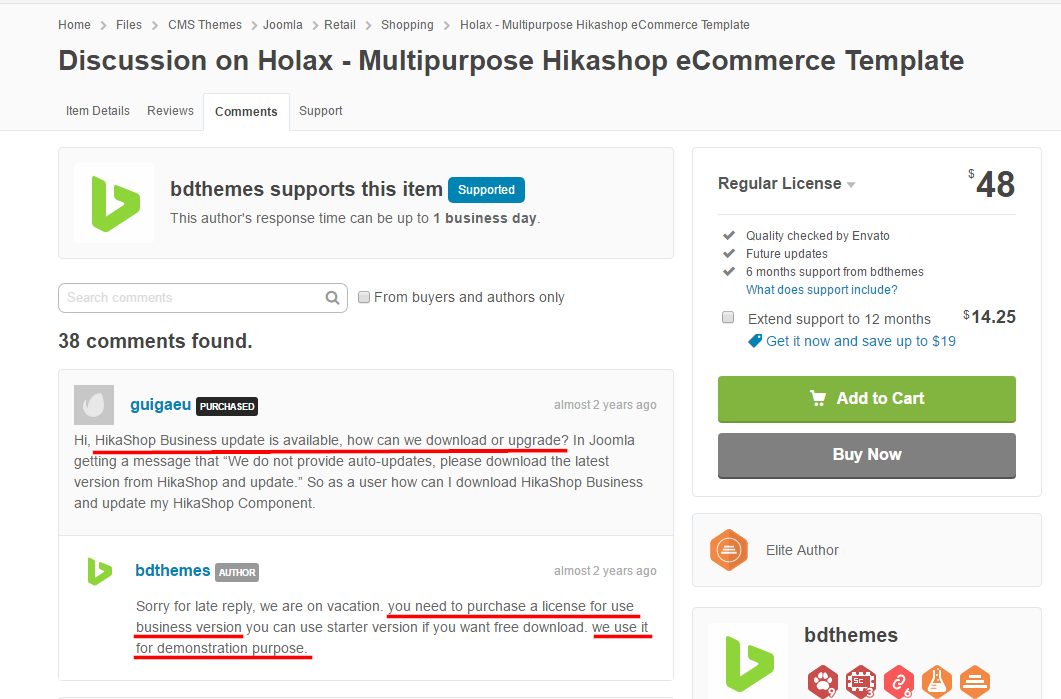 My customer just purchased Joomla template from bdthemes.com that contains Hikashop Business 3.0.1 [1703141408]
