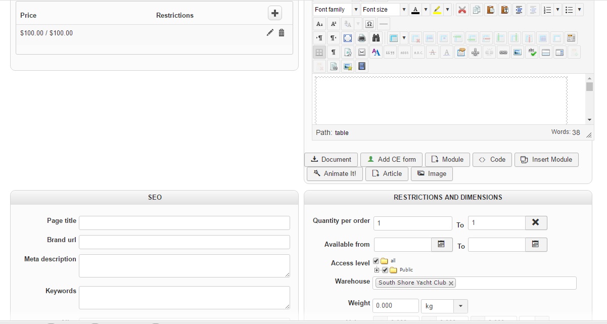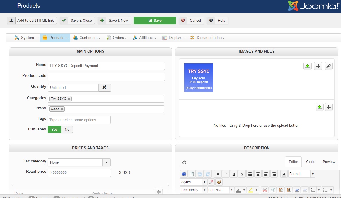 We have a very simple Hikashop product called "TRY SSYC Deposit Payment", which is simply a $100 deposit payment.