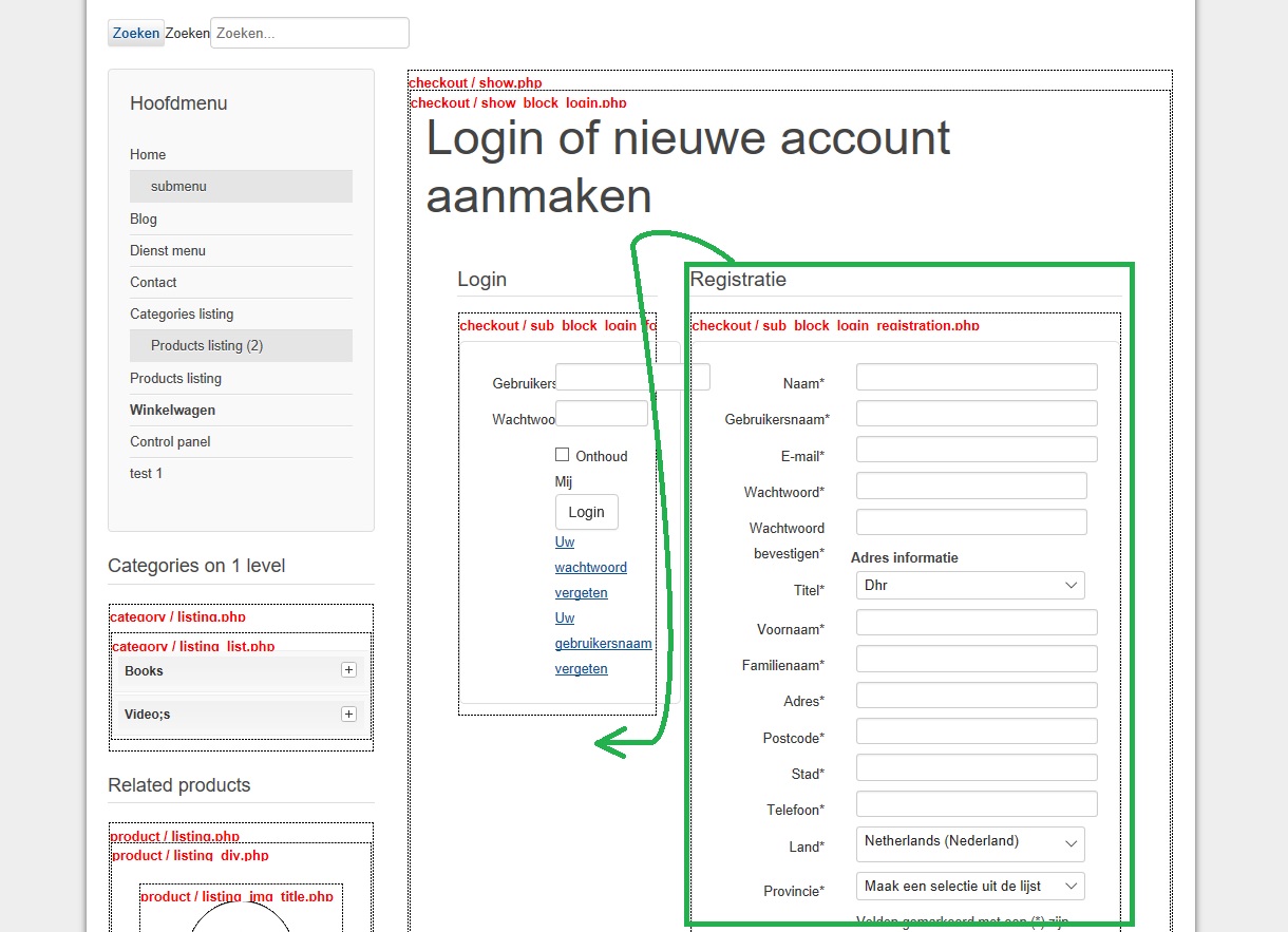 What I would like to do is to have the login on top and underneath the form of registration "registratie"