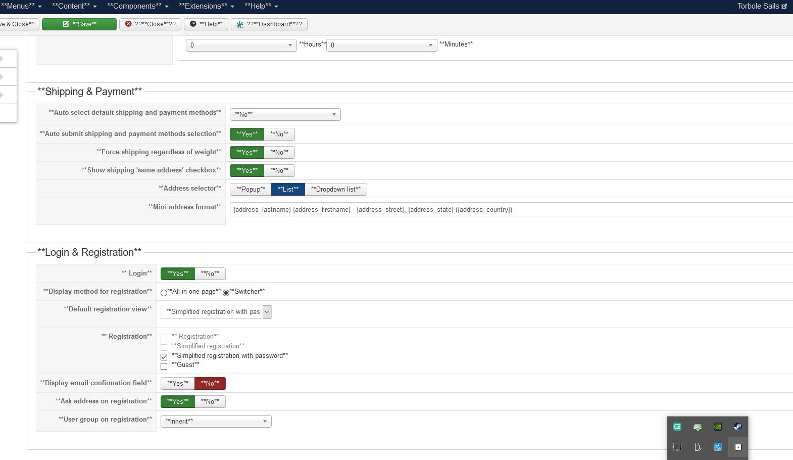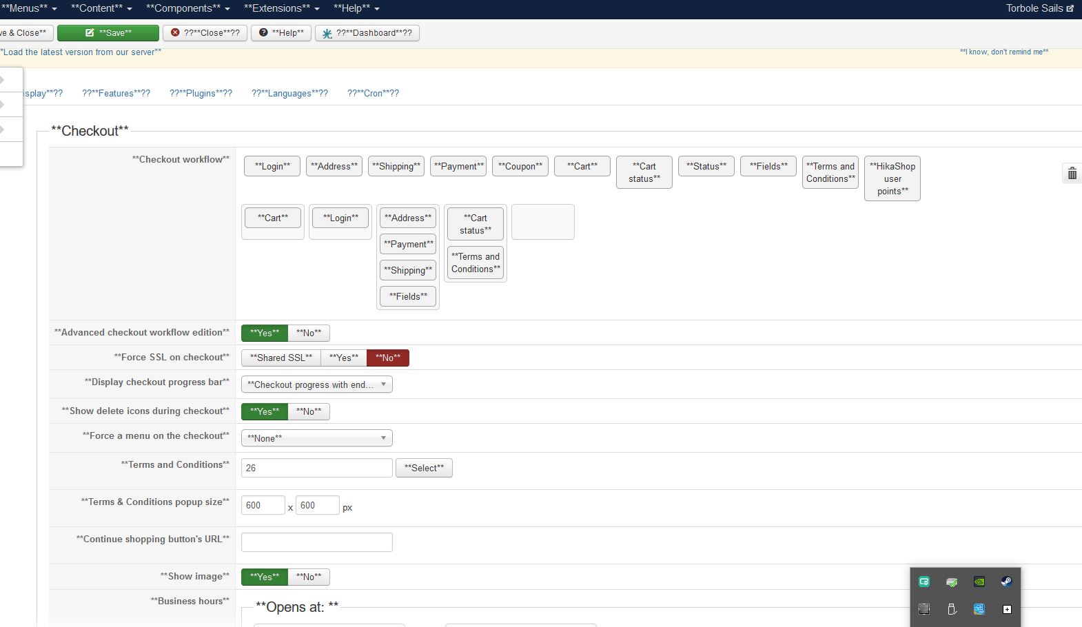 - Your checkout workflow configuration that you can find via "Hikashop->System->Configuration->Checkout"