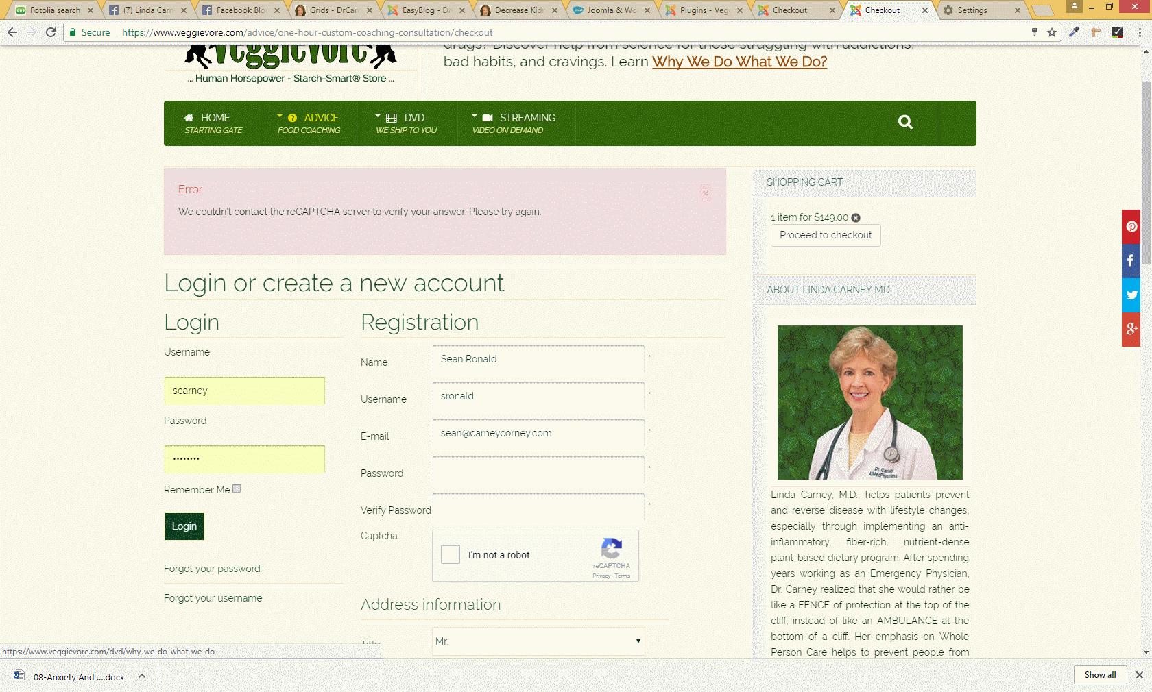 ALSO: I would LOVE to display the ReCAPTCHA once it is working again below the Address Information section. But, when I selected the address option it did not display even the word Captcha which is what is being displayed now.