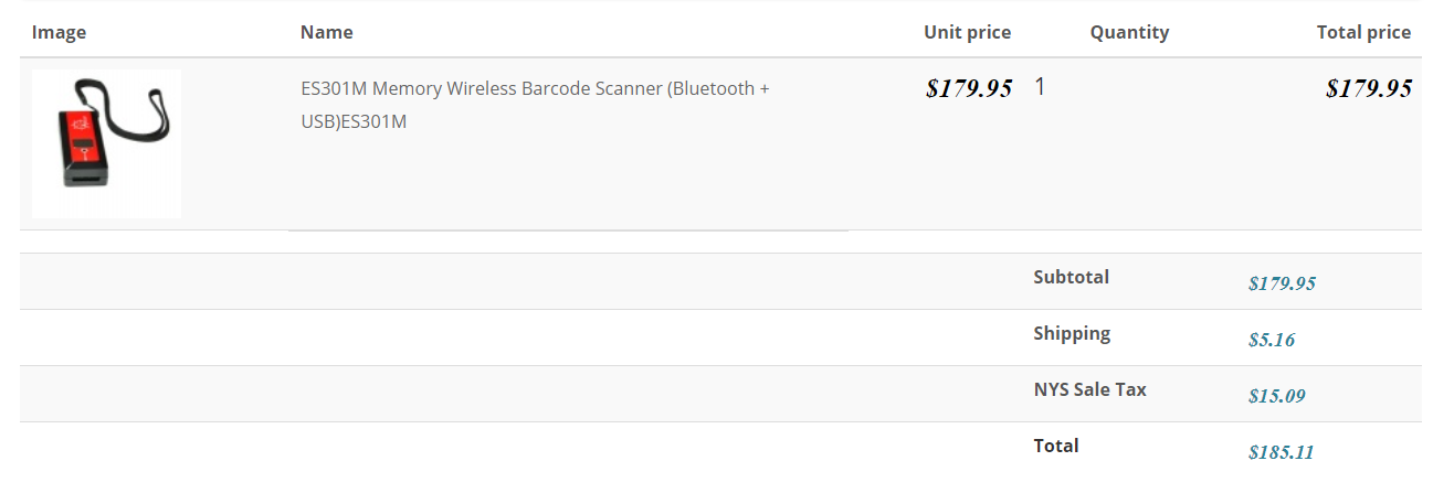 Total: $201.53 ($179.95 + $5.16 + $16.43=$201.54)