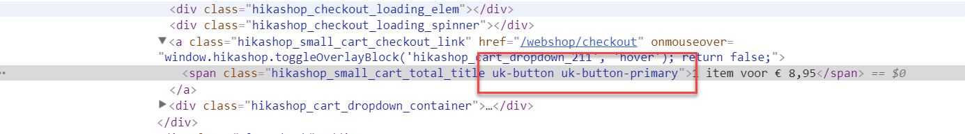 Everything works fine but I like to add a button classes to hikashop_small_cart_total_title class.
