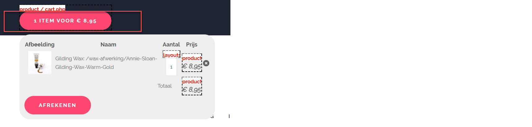 So I set the option dropdown cart (hide)