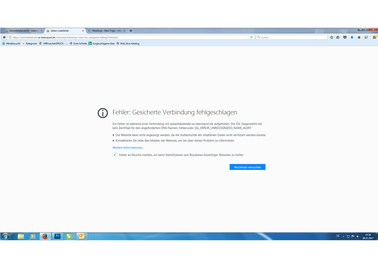 i have a problem. I have a Webseite which i use as an Adventskalender. So we are just selling stuff from the 1st to 24th Dezember. Now i wanted to use the same one like last year and it all works perfekct. I now wanted to do a bought something for test and i dont get to the checkout process i always getting an error massage the setting is still like last year i think.