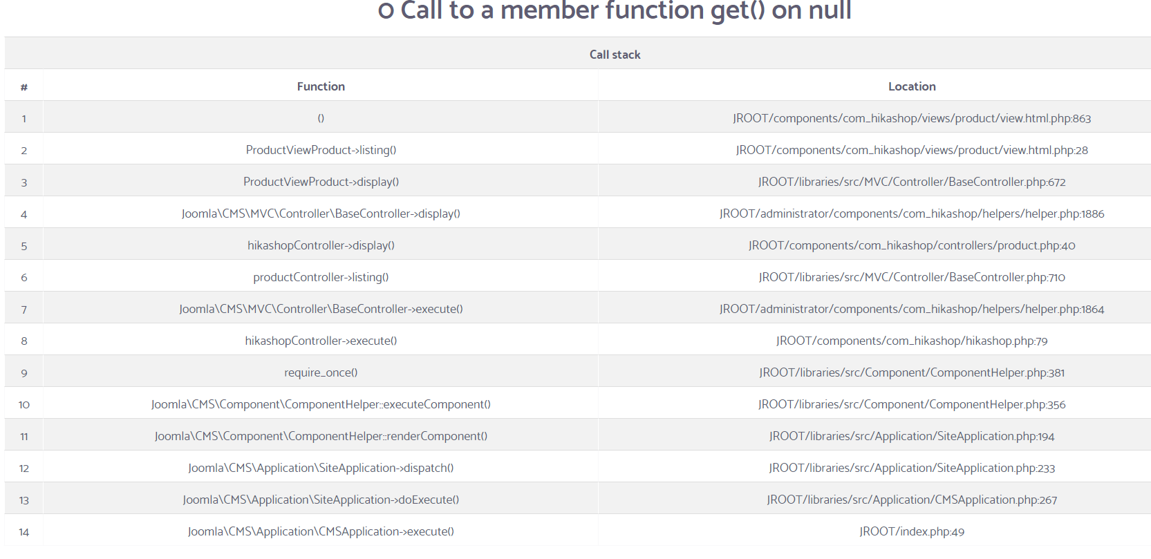 - That "Call to a member function get() on null" error is a generic message. Please activate the "error reporting" and "debug mode" setting of your Joomla configuration and that will display more information with that message, which will allow you/us to know where that error is coming from and why it doesn't work.