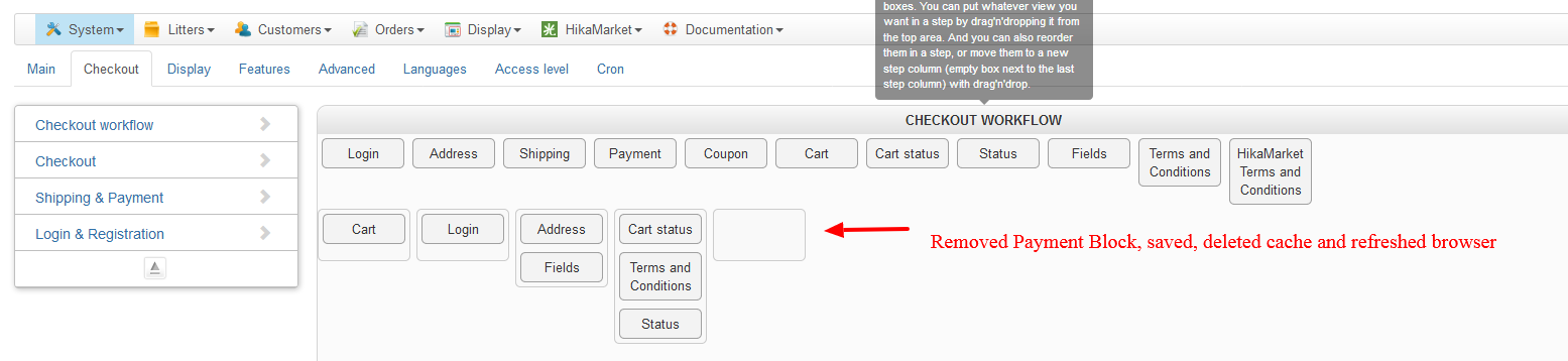 2. That won't be the case if you remove the "payment" view form the "checkout workflow" as you said you had in your first message.