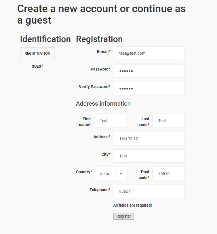 We are trying to set up registration during checkout. We have configured our checkout as per screenshot. Now the issue.