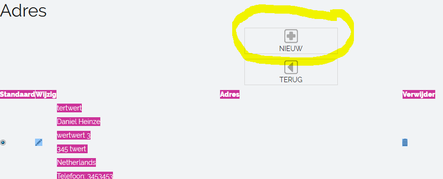 There are 2 Buttons above (Screenshot): NEW and TERUG (back).