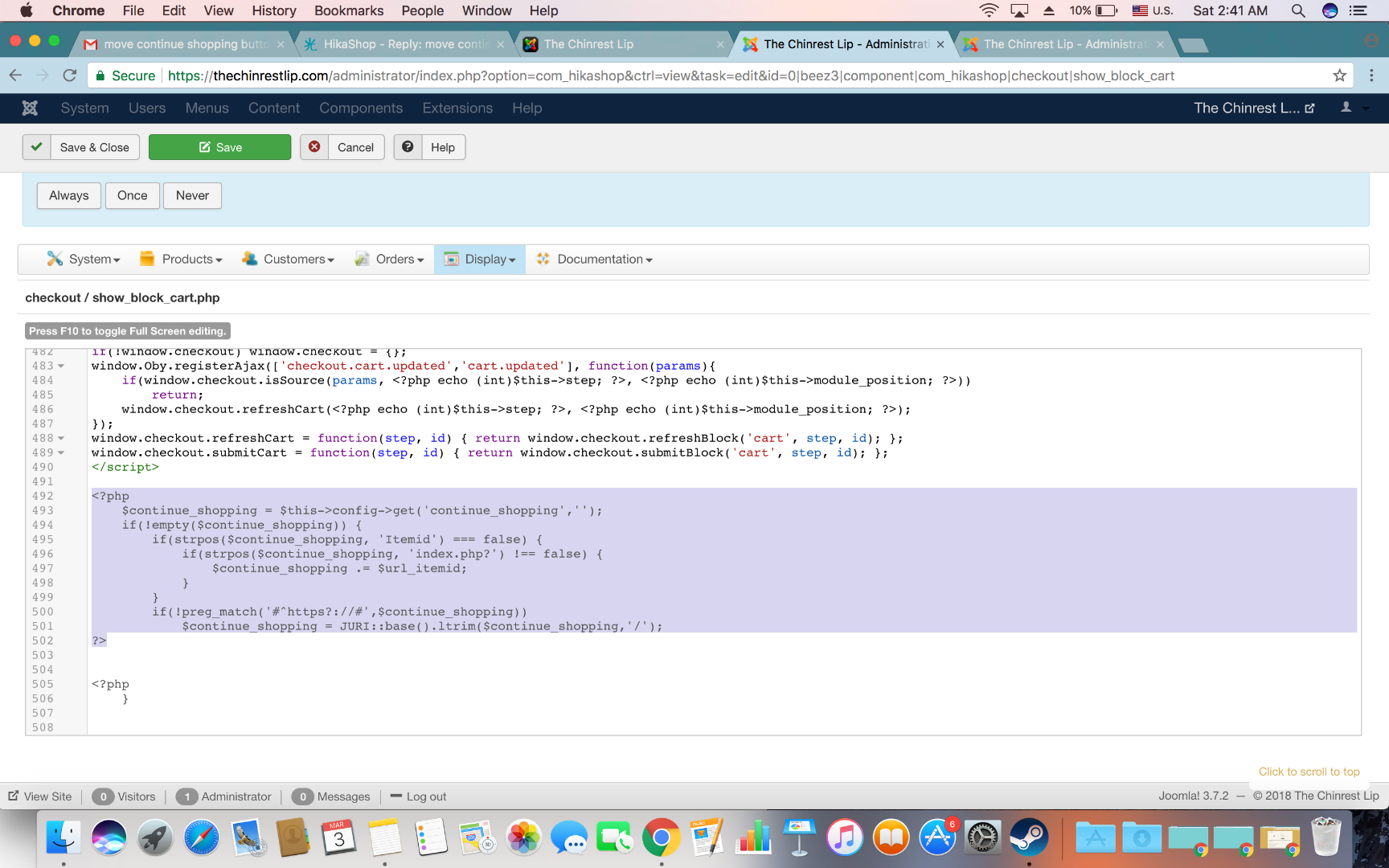if(strpos($continue_shopping, 'Itemid') === false) {