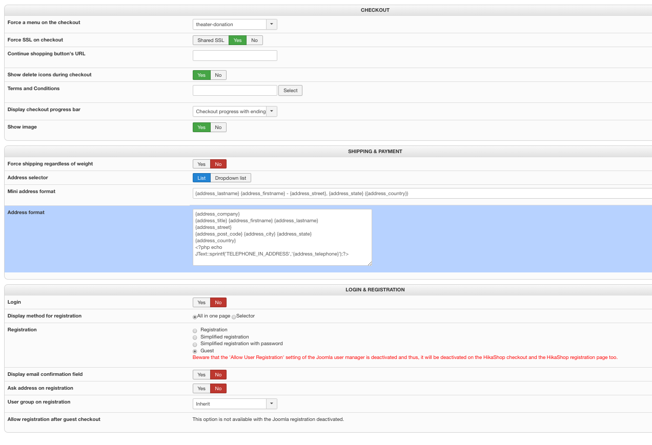 Beware that the 'Allow User Registration' setting of the Joomla user manager is deactivated and thus, it will be deactivated on the HikaShop checkout and the HikaShop registration page too.
