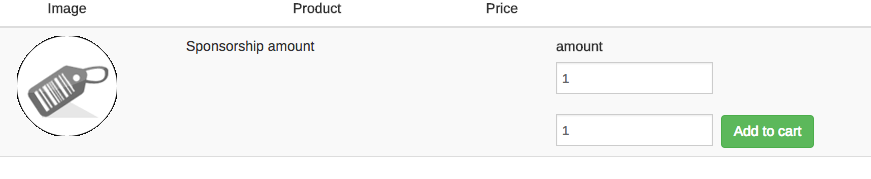 - create a product named "Sponsorship amount" set the price to 0 and the category to "donation"