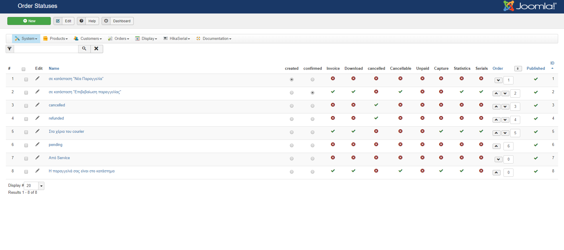 Could you also provide a screenshot of the System>Order statuses menu and of the "order" section of the HikaShop configuration so that we can get a better understanding of the situation ?