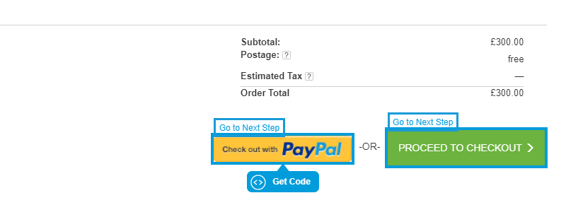 1 - how can I insert a message before the button to improve usability (eg. to explain to the user to click there for a quick checkout or to continue for offline payment) - in looked in checkout / show.php, checkout / show_block_cart.php and in payment.php but can't find anything there to locate the button.