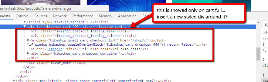 My problem is that by inspecting the code I cannot find any div that is being showed only when the cart is full and that also contains the full cart, so that I can apply to that one the color.