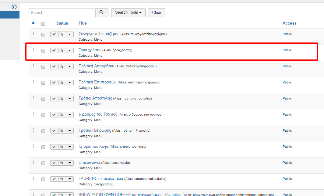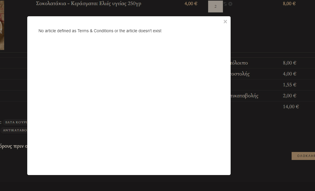 "No article defined as Terms & Conditions or the article doesn't exist"