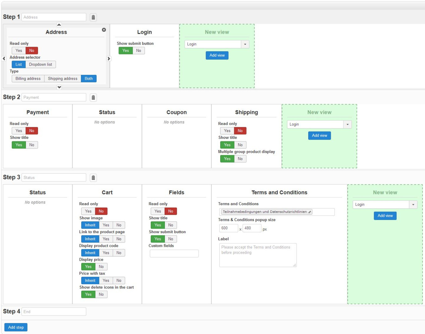When removing the Terms and Conditions View, he can easily go to the next step. Then everything is fine.