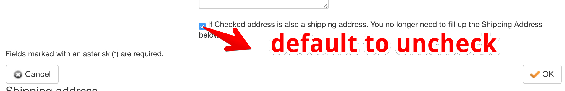 5. Also how do i set the check boxes to uncheck. So that the buyer will have to check it if he wants the billing and shipping to be as one.