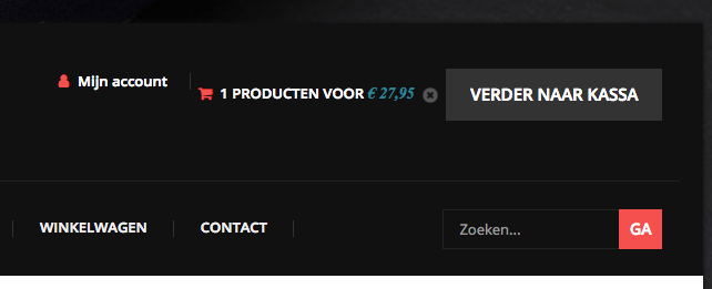 When I put a product into the cart, on my pc it shows in the right upper corner the checkout cart ("verder naar kassa" button). (photo "checkout 1")
