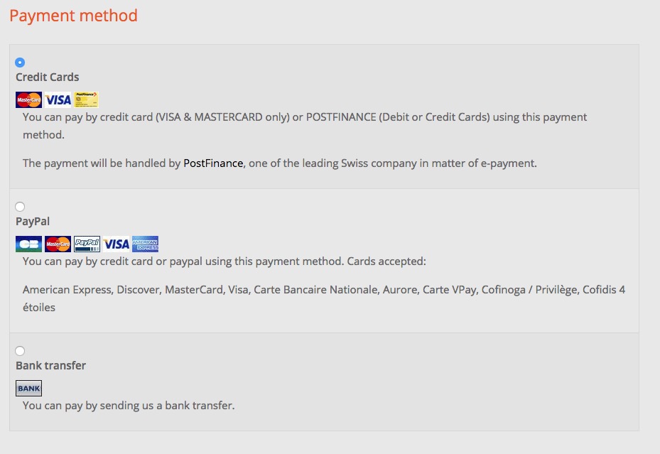 I'd like to modify the layout of all payment plugins, and have the radio button, payment method and icons on a same line.