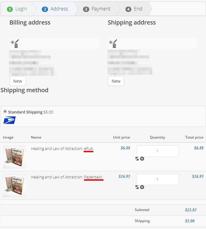 But when we tested it, only the billing address was displayed through the checkout workflow which is what should be done, as we need a billing address for every orders, and a shipping address only for order with weight.