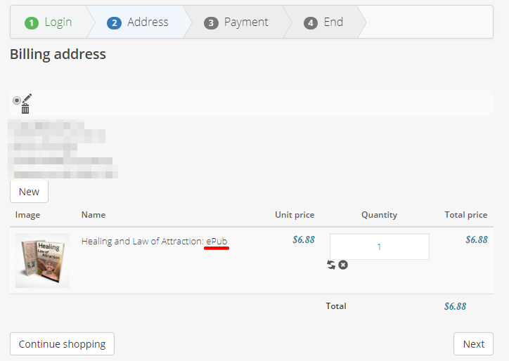 Virtual ebook asking for Shipping