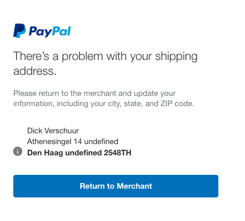 Paypal: There's a problem with your shipping address