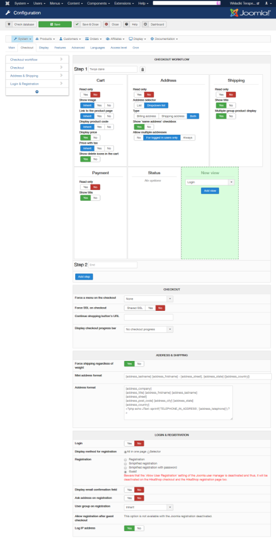 I consider myself as a quite experienced Hikashop user, but I can't figure out why address fields don't appear in my shop. I get errors on checkout proceed: