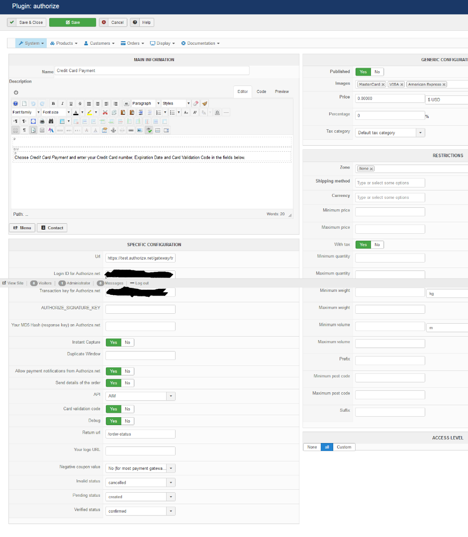 Authorize.net plugin: /order-status
