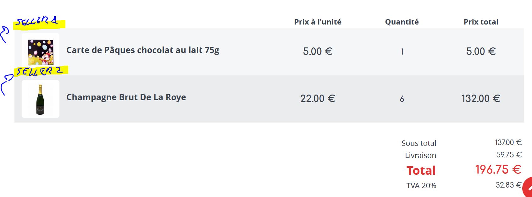 The main idea is to specify the name of the vendor in the cart and to list each product into it's vendor.