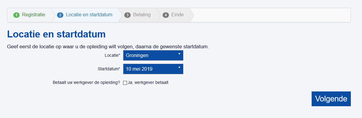On this website search for "export" as an example, click on the blue "meer info" buttton that is behind a product, and then click on the green "inschrijven" button to put it in the shopping-basket.
