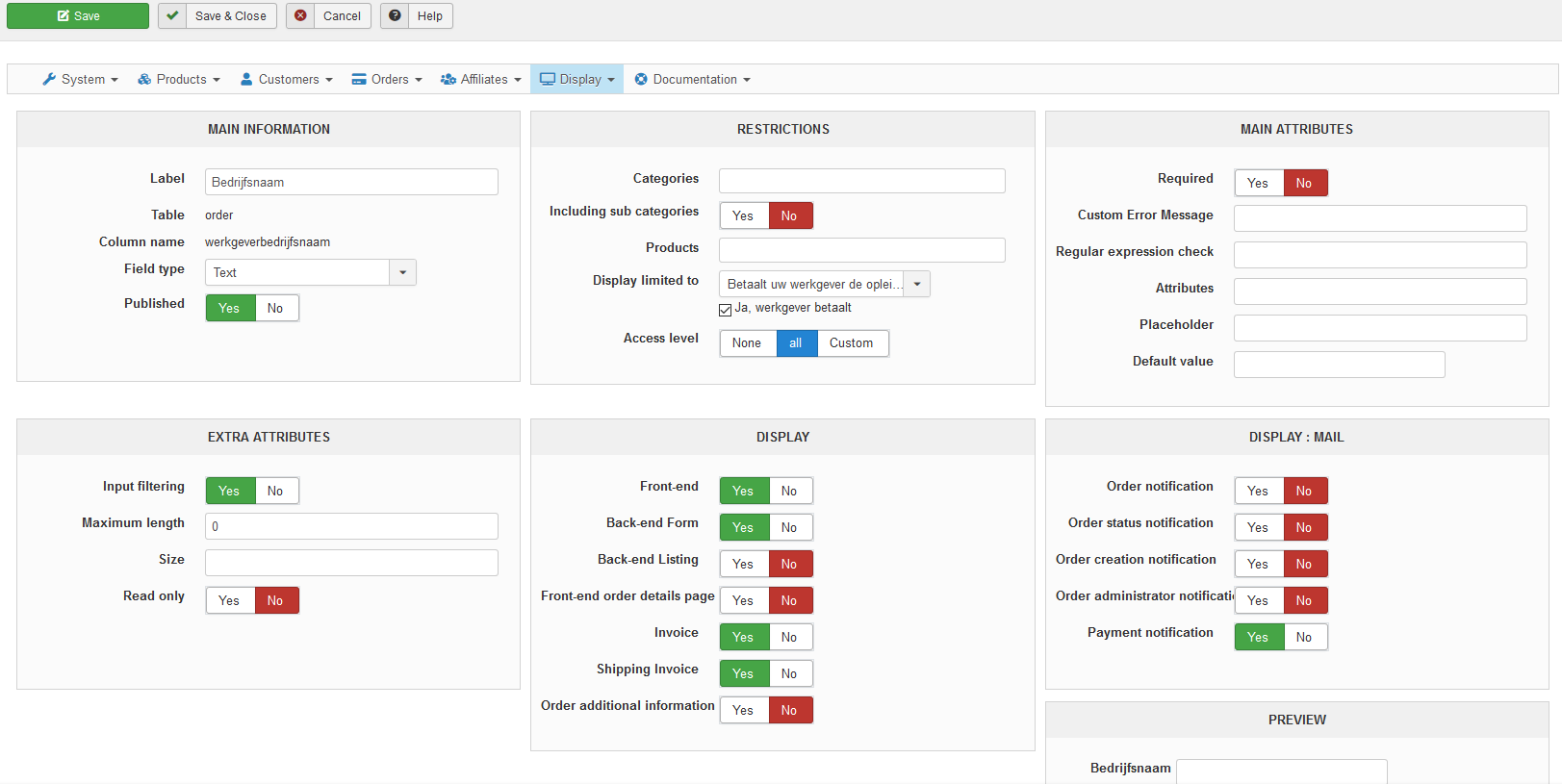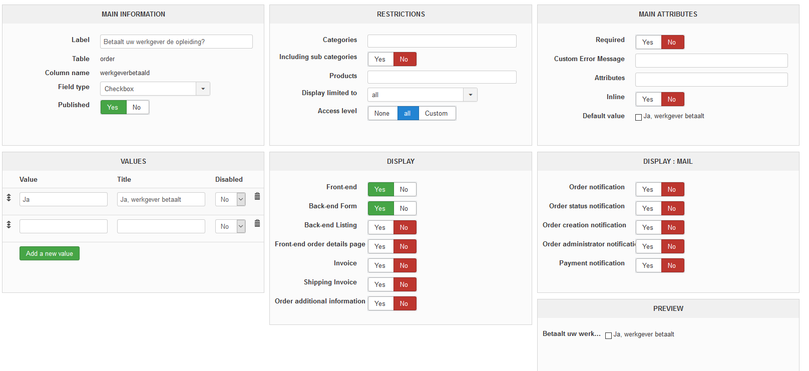 Custom field checkbox: