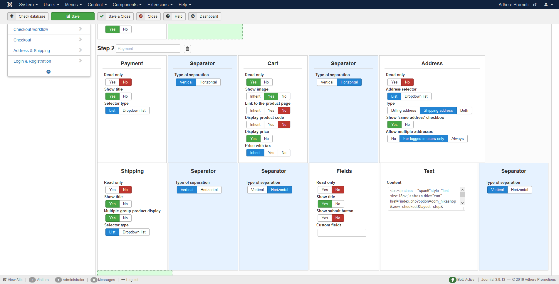 First i think you shouldn't use so many seperators in one step. Basically you want to add one seperator between left and right columns only. So in you case you should add seperator between your cart block and other blocks.