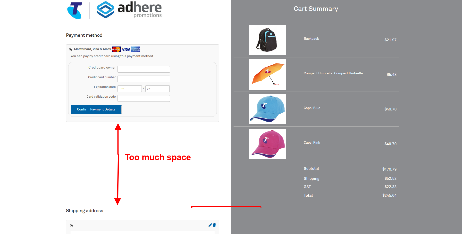 So what it does, it moves cart block to the right and other views to the left.
