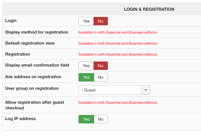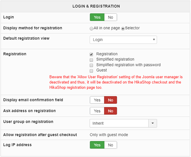 Looking through your documentation I see the Login & Registration panel in HikaShop — which shows checkboxes for the type of registration (see attached). It includes a checkbox for Guest. However, in the current version of HikaShop, that entire section does not appear.