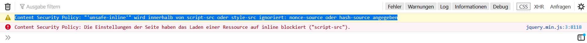 In the debug I see now an CSP error which was not there before. Any idea what can be reason?