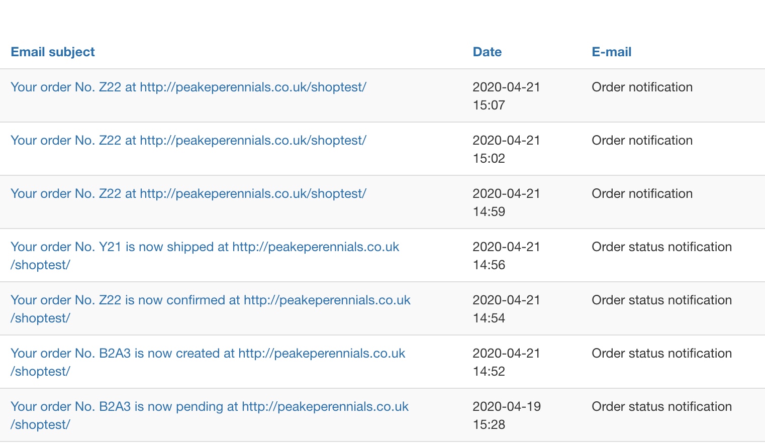 If I then look in the Customer Emails History - I can see all the emails that it should have sent, admin, status, creation.