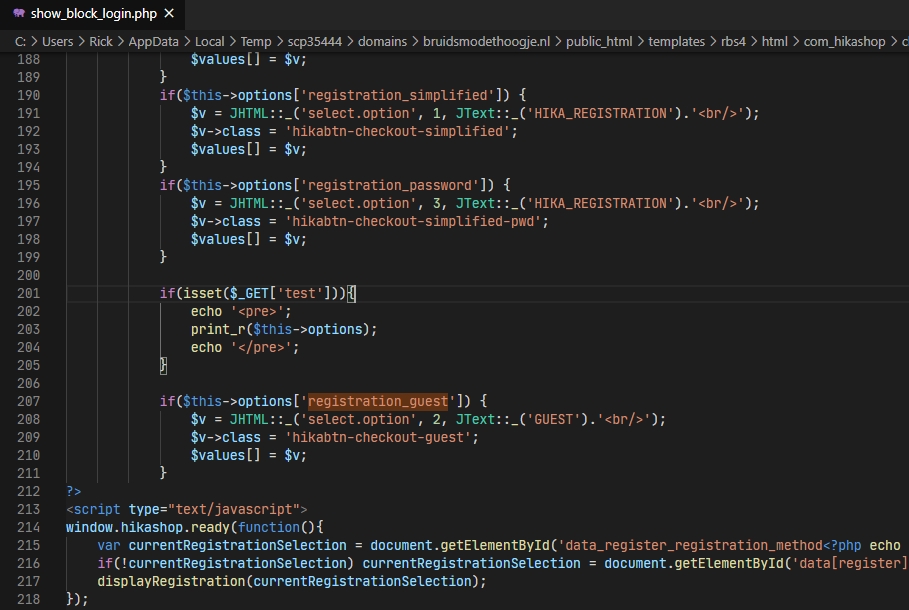 When I enable the Guest checkout checkbox in the checkout configuration (image 1) the button will nog show up (image 2). It looks like the parameter is not stored in the backend. When I do a vardump of the $this->options in the show_block_login.php I get an empty variable.
