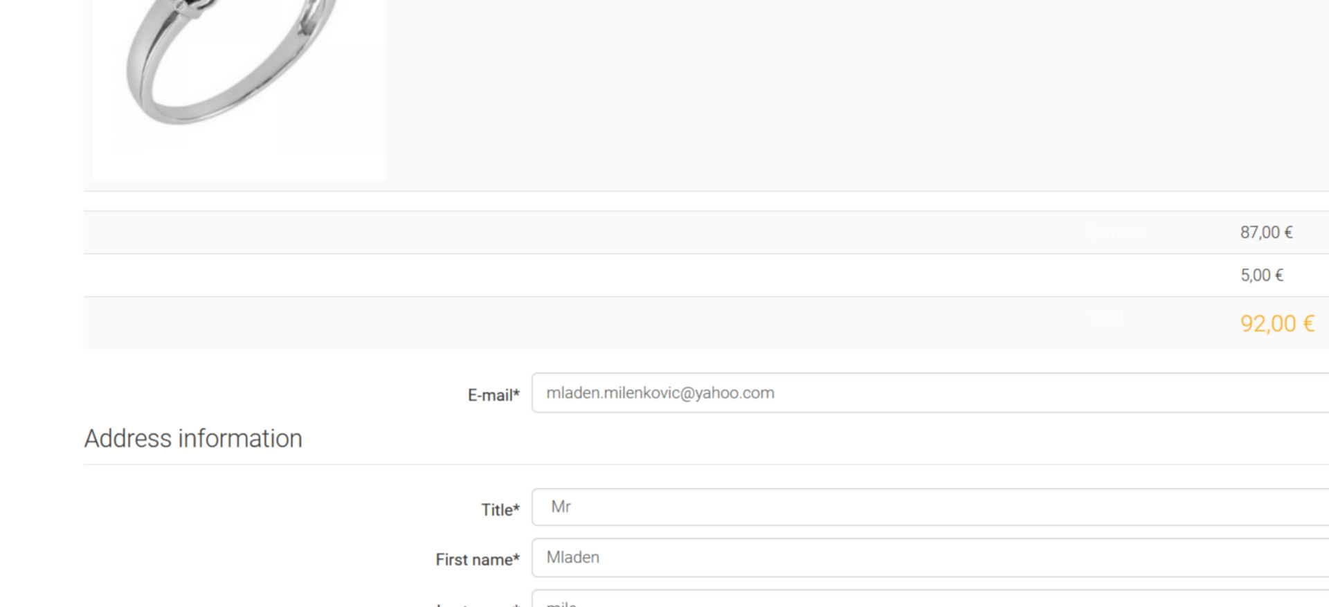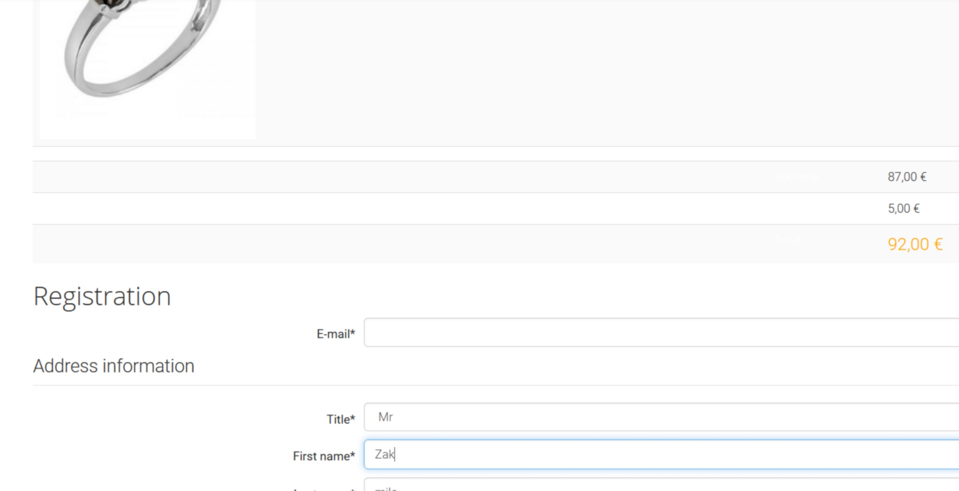 Only guest-checkout (without any registering), and to receive contact data from customer: postal address (mandatory), e-mail address (mandatory), telephone number, and some remark from customer if any.