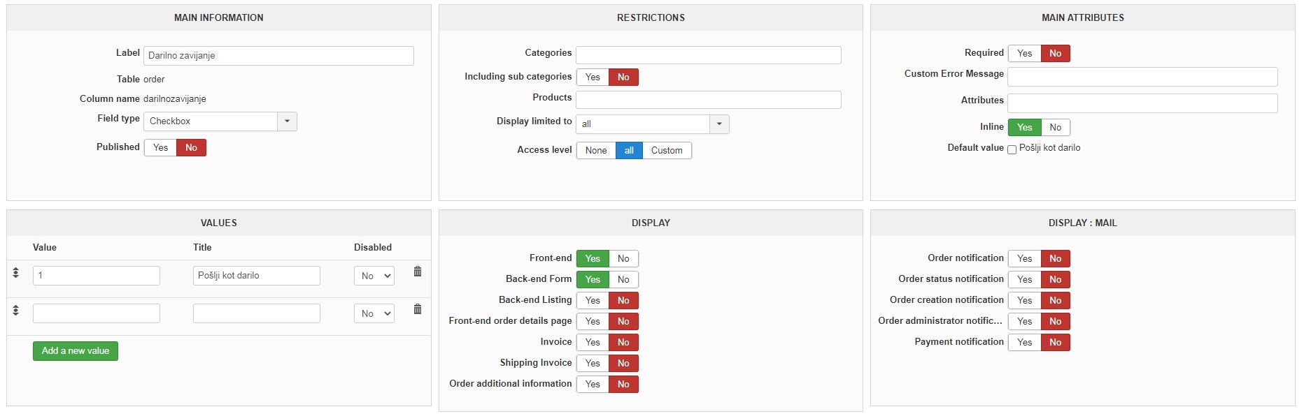 For my test, I enabled the order custom field, but I set-up some ACL so it is not visible for guest accounts.