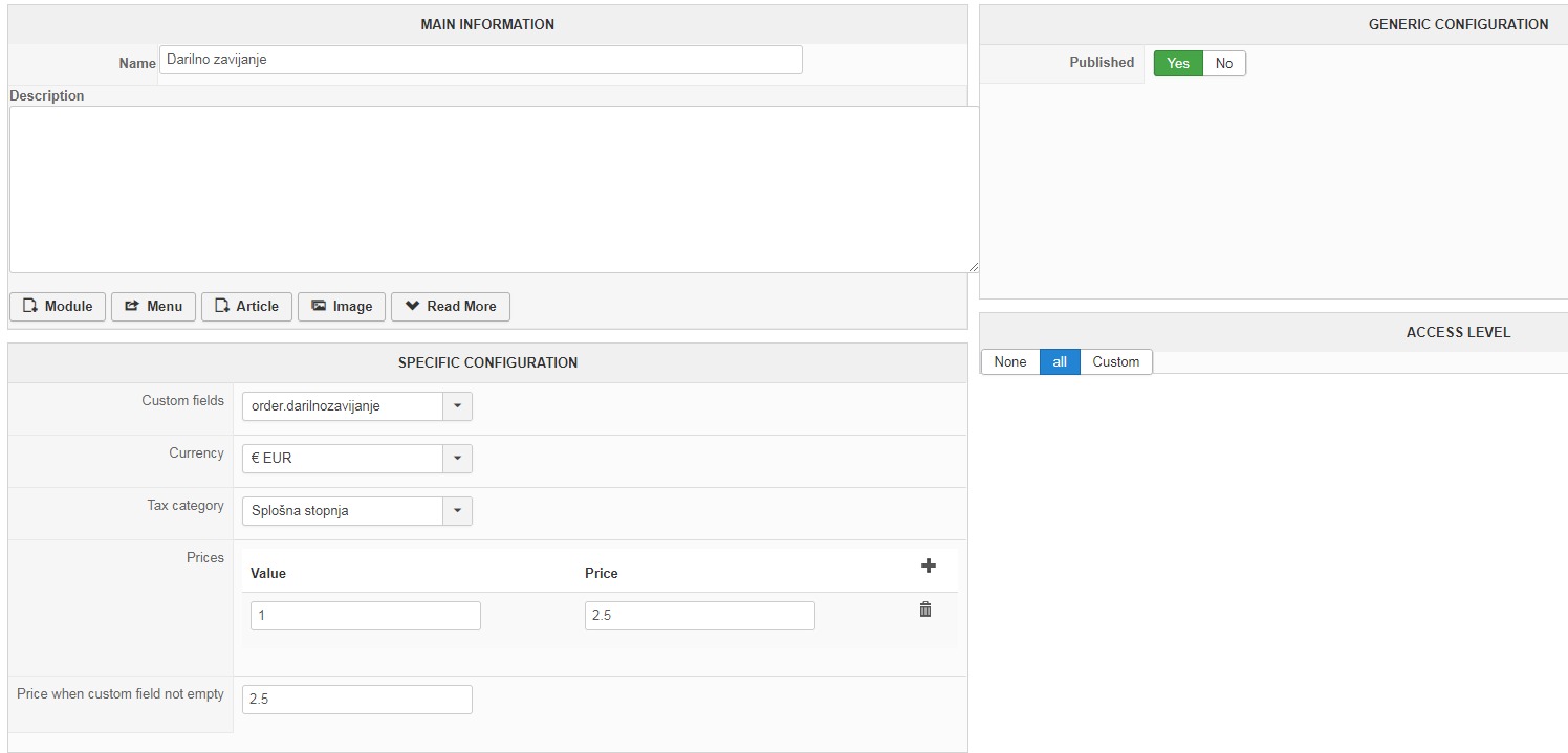 I also published the instance for your "custom field price" plugin, so it can add the price when the checkbox is checked.