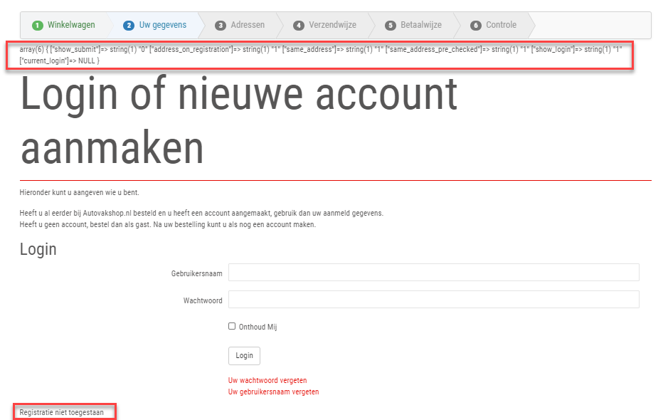 -- Error-message(debug-mod must be tuned on) -- : Registration and guest checkout not allowed