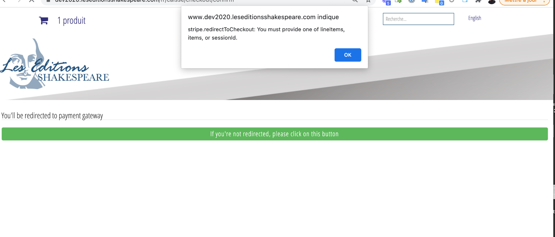 When we enter a coupon code, we receive this error instead of being redirected to Stripe.