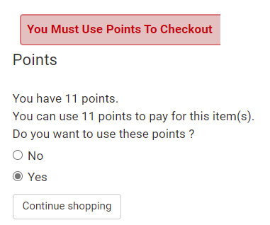 How can I get that error message to go away when I am choosing to use points to checkout?