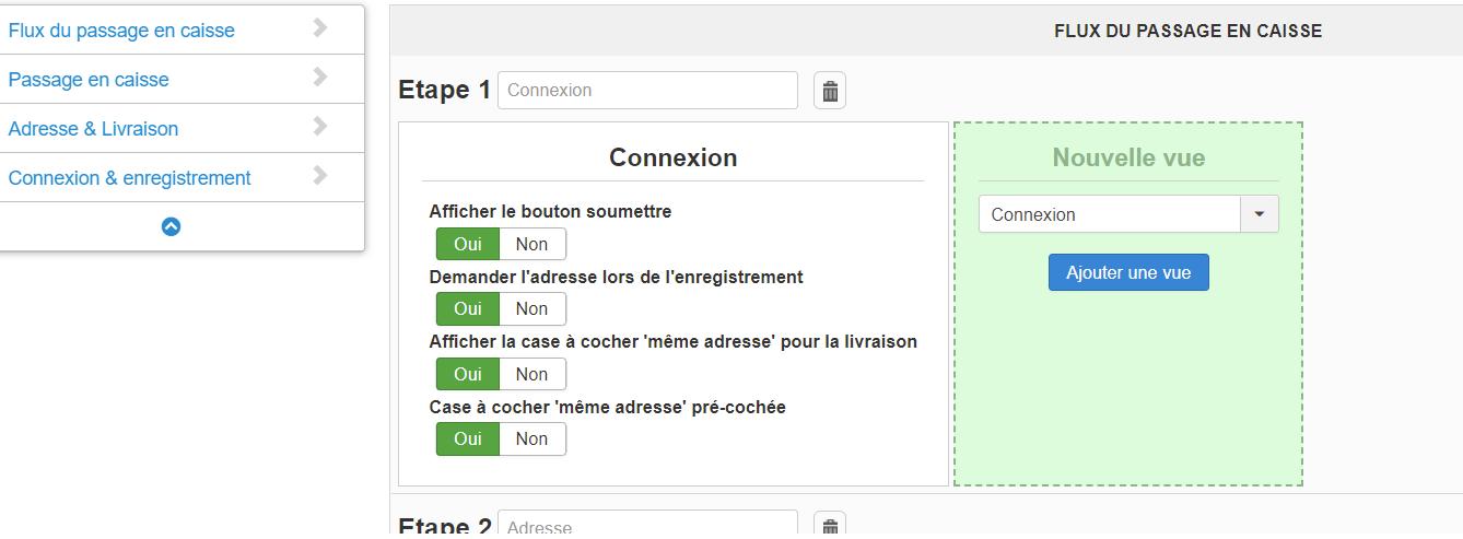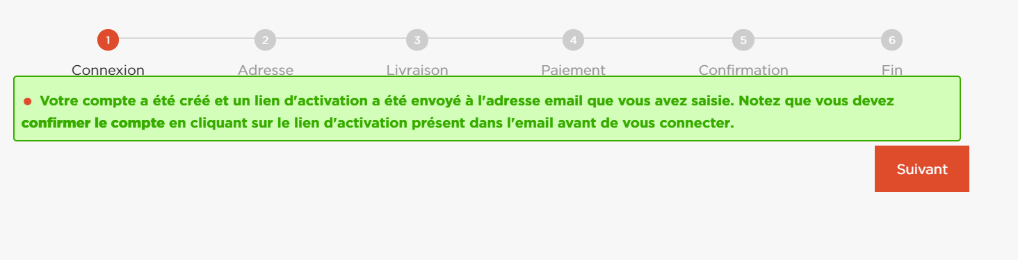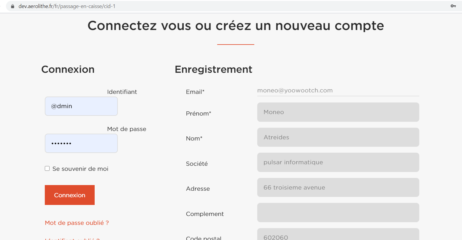 the first step of the checkout is the login / registration :
