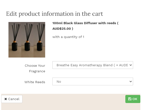 This product has characteristics and options, you will see when you edit in the cart the lost options